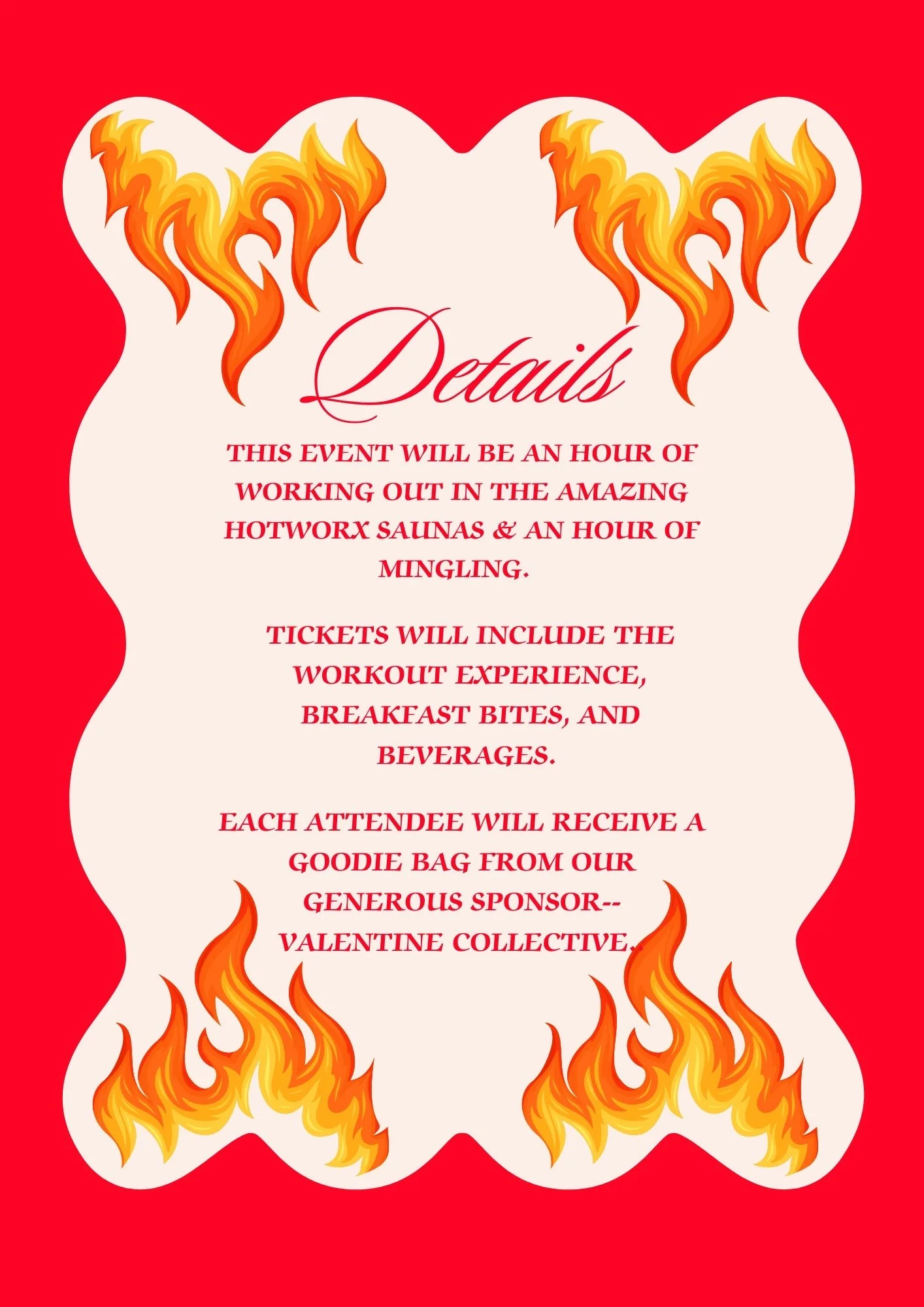 Tickets include the Hotworx session, food & drink, & a goodie bag from our amazing sponsor--Valentine Collective. We cannot wait to start 2025 with you!